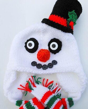 Adorably cute Snowman knitted hat pattern with a very festive coloured scarf for ties