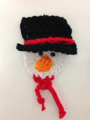 Crochet pattern to make a cute snowman pin to wear on your coat. It would also make a great package decoration, magnet or Christmas tree ornament.