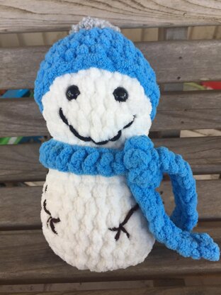 This adorable little snowman can be made with any yarn weight and hook size. Just make sure to keep your stitches tight to hold in the stuffing. The blanket yarn makes it very soft and squishy.
