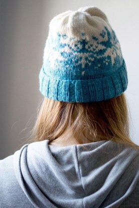 I've always been fascinated by snowflakes. Knitted snowflakes are no exception. This hat is knit up in two contrasting colors of Malabrigo Worsted to create a super warm hug for your head.