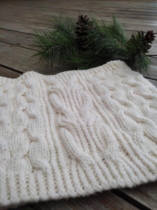 The Snowy Trails Cowl - Looking for a warm little winter cowl to keep the wind out on those chilly days and nights ? The Snowy Trails Cowl has you covered - this stylish unisex cowl will keep your neck toasty warm. An entertaining project from start-to-finish, it features two different cables: one creating gentle undulating texture and another one creating a bold, interesting highlight.