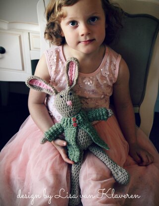 Gauge: You may work to your own gauge. Finished Size: Sample bunny was approx. 24" tall standing, including ears.