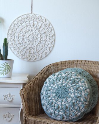 So Natural Pillow. The pillow is the second project in the So Natural series (the first was So Natural Mandala). It is a project where you work with a lot of post stitches. Post stitches provide a lot of texture in your crochet, which gives this cushion a sturdy look. Especially in combination with the recycled Barbante yarn. Crochet the front and back in the same colors or vice versa. Or choose a solid color for a calm look; you can choose whether to follow the pattern or make a different combination, by replacing the single stitches with other ones. This pillow matches the So Natural Mandala design.