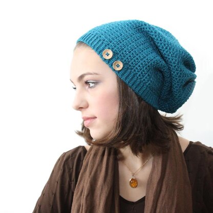 You can crochet this stylish slouch using 2 skeins of sock yarn. The pattern calls for 2 skeins of Knit Picks Gloss Fingering Yarn, but the slouch in the last 2 pictures was made using 2 skeins of Diamond Foot Loose.
