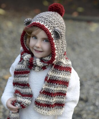 The sample was made with Lion Brand Heartland (brown and cream) and Red Heart Soft (red). Some suggested substitute yarns are shown below.