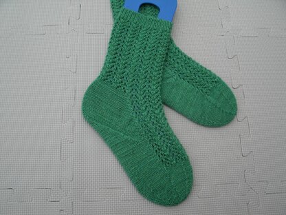 Very simple lace pattern, added to a wonderful heel that has no stitches to pick up, makes it the perfect for beginning sock knitters.
