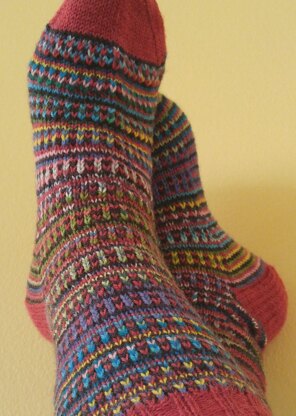 I appreciate a crazy sock. For this design, go ahead and pick four colours that don't really match - the helical striping method makes sure that anything and everything goes! I tend to choose one or two wildly variegated or striping yarns with solid colours for the rest, though there are absolutely no rules here. Ideal for using up mini skeins or sock yarn leftovers, these socks can be made out of any combination of colours you have on hand.