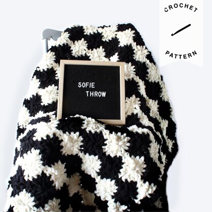 This is a crochet pattern for Sofie's Throw Crochet blanket! It's a super plush blanket made with thick Bernat blanket yarn and a large hook, so it can be whipped up in no time. This blanket was made in a simple black and white colorway but you can use any two colors with this stitch pattern to make it your own!