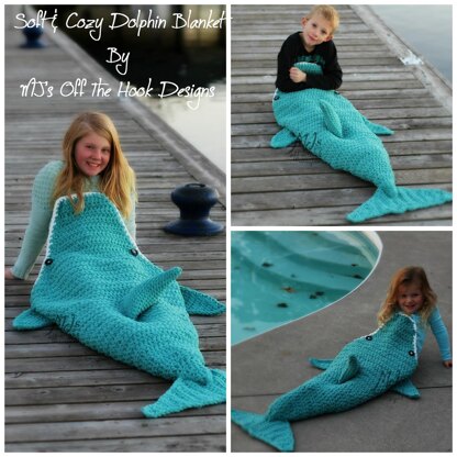 This is a PDF crochet pattern for a soft & Cozy Dolphin Blanket! Perfect to snuggle up with on the couch for all the dolphin lovers out there!! My pattern includes newborn to adult sizes so everyone in your family can enjoy one!! The blanket is designed to cocoon around the legs and feet to keep you tucked in and warm. The blanket is made using an 11.5mm (P) hook and a 9mm (M) hook made with Bernat Blanket yarn. I recommend purchasing the 300g balls and you will need 1-3 balls depending on the size you are making. I've designed this blanket to work up quick and it's suitable for beginners!!