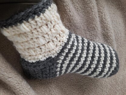 Have fun while crocheting these snuggly socks! And when finishing this project never have cold feet again!