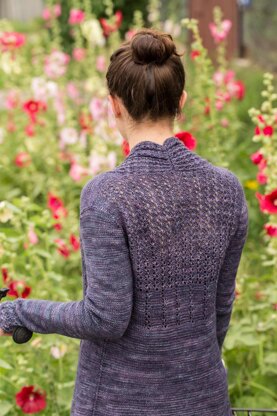 This pattern was created in collaboration with Manos del Uruguay. When asked whether I would like to design something for any of their yarns, I decided on Fino, a very delicate, single ply, lighter fingering weight yarn. Since this yarn is amazingly soft, I appropriately named the resulting cardigan “Softly”! It’s worked top down seamlessly, with an interesting gathered detail at the back collar, a delicate lace panel on the back and hem and i-cord finishing on both body and sleeves.
