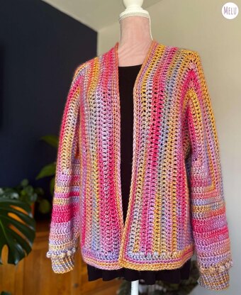 I wanted to design a cardi that felt approachable for everyone, whether you’ve made lots of garments or are picking up your hook for your very first one. The elongated hexagon construction keeps things simple while giving you plenty of room to customise, from cropped to floor-length, in your favourite yarns and colours.