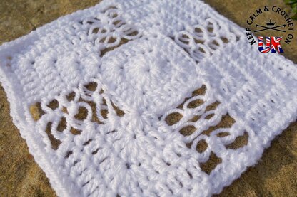 A uniform little square that would look great in a multi-square afghan or worked up in different colours sewn together as a blanket - the possibilities are endless!