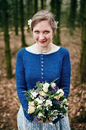 I got married in early April. When I was making my wedding dress, I suddenly realized it might be a bit cold in case the ceremony was going to be held in the lovely landscape outside of the wedding venue we hired – but a knitter can remedy a situation like that, right?  Something Blue is a sweet little cardigan, designed to go over that perfect dress. It’s only waist length, so a skirt can flow freely, still being warm and cozy. Worked top down with raglan shaping, you can try it on along the way to ensure the fit. The waist is pulled in with a sideways applied waist band featuring an easy cable pattern.