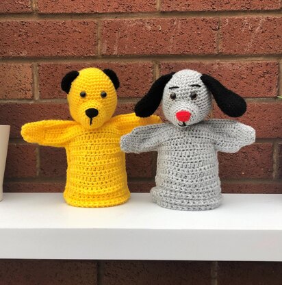 Here you have the written crochet pattern for Sooty and Sweep hand puppets.