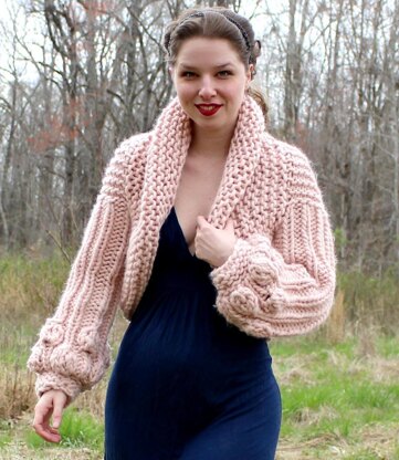 The Sophia Cardigan features oversized rib sleeves with two rounds of puff stutches, and garter stitch throughout the back rib and oversized collar.