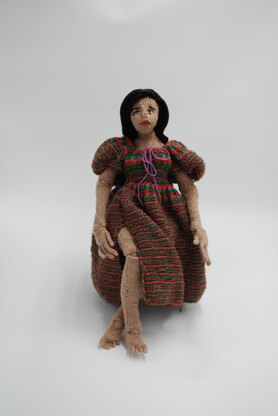 As my first pattern, I am proud to present to you, my tiny little knitted person “Sophia Doll”. I am happy for you to knit up your own doll and sell in small numbers, provided you credit me. Please do not use my pattern or images without permission. Materials • Tapestry needle (a straight tip needle) • Embroidery needle (#9) • 5-6mm wide elastic • Pet brush (with metal teeth, bent at the end) • Hair straighteners • Skin color yarn: 2 balls • Lip color yarn: 1 ball • Eye color yarn for the iris: 1 ball • Eye color yarn for white of eyes: 1 ball • Hair color yarn: 1 ball • Yarn colors for dress: 1 ball in main color, 1 ball in contrast color Gauge For the doll: 25 stitches - 40 rows per 10cmm/4 inches using stockinet stitch, worked on 2.75mm needles For the dress: 22 stitches - 45 rows per 10cm/4 inches using garter stitch, worked on 4mm needles