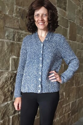 This lady’s 8ply/DK cardigan has set in sleeves, collar and 2x2 rib bands. The front bands are knitted with the fronts and there is no neck shaping required.