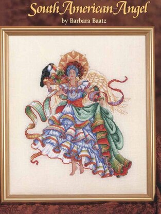 Designed by: Barbara Baatz Hillman. With her glorious wings at rest, this beautiful angel carries a basket of tropical fruit topped with a toucan. Her gown is adorned with colorful ribbons and beaded necklaces for the season's festivities. For a truly grand gift, consider pairing with the other angels in this collection.