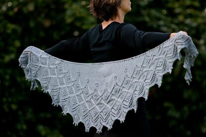 This top-down crescent shaped shawl combines Estonian lace stitches with intertwining cables to produce an eye-catching shawl a little different from the rest. Intertwining cables and eyelets depict butterflies, while nupp flowers interspersed through the twisting cable motif reflect a pretty garden cascading over a trellis. A picot bind off adds a dramatic flourish at the bottom edge – the perfect end to this beautiful accessory. No row is repeated, so you are never bored and the edges grow dramatically due to the extra increases. The Southern Blue is a species of New Zealand butterfly common to the Canterbury region, and it sports a similar blue-grey colour scheme to this beautiful shawl. Knit in Zealana Kiwi Fingering, it gives a little more substance than a laceweight shawl, but fortunately Zealana produce this lovely blue-grey colour in Kiwi Laceweight as well, should you wish to knit something more ethereal in appearance.