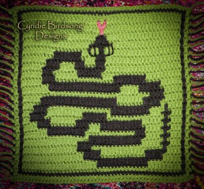 You will need 2 main colors of yarn - one for the background and one for the snake. You will also need a yard or 2 of pink for the tongue.