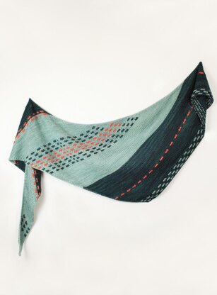 The pops of garter stranded knitting against a smooth stocking stitch background make this elongated triangle shawl the perfect canvas for colour play. As there are only a few rows of stranded knitting, this is a great project for knitters who are new to the technique. Plucky Knitter’s Aran blend, Rustic, makes this shawl a quick knit — and with so many hues to choose from, you can make a piece that’s truly your own.