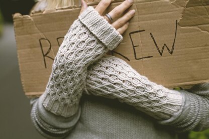 The texture on these mitts creates an intriguing all-over raindrop pattern that is deceivingly simple to knit and requires no cable needle. Spate features a fold-able cuff that can be worn flipped over your fingers to keep them warm on those blustery days. These are sure to become your staple mitts.