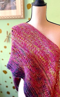 The Speckle My Fade Shawl works best with variegated, multi, or speckled yarn. The written pattern has been carefully tested and edited. Construction is top-down, final size is 90" long tip-to-tip by 15" at widest depth.