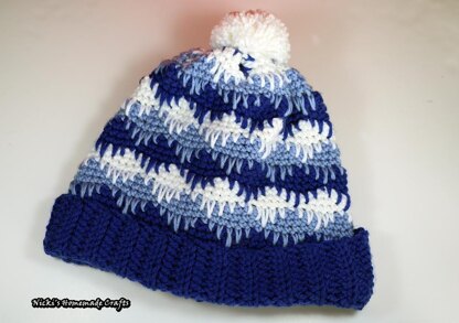 I love this hat, because it lets you dream about things when looking closer. haha At least it did it to me. It looks like closed eyes with long eyelashes or even a snowy mountain range, perfect for this time of the year. The pattern is for non-slouchy hat, but can be elongated to make it a slouchy hat. The non-slouchy hat is 10inches wide (if laid out flat) and 8.5inches in height (without counting the pom-pom).