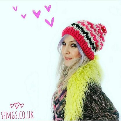 Crochet pattern to make this fun, quirky and kitsch zig zag chevron Spike Stitch "Mr B Beanie" crochet bobble hat using Spike Stitch!
