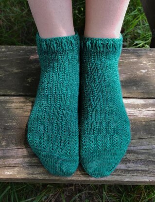 Flowering grass tips or spikelets come to mind when you see these socks' texture. Here is an opportunity to learn a fun new bobble technique! Spikelet Socks are short toe-up socks with an alternating skyp pattern and an original braided bobble ribbing on the cuffs that work up quickly.
