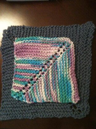 This is a great little dishcloth/towel pattern. It starts at a corner and works in a square to the opposite edge. Make it the size you like! (See Below.)