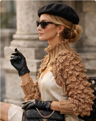A bold bolero pullover featuring a striking spike-stitch pattern and long sleeves for a modern, statement-making look. The highly elastic stitch offers a comfortable, flattering fit for all body types, while the unique construction ensures versatility.