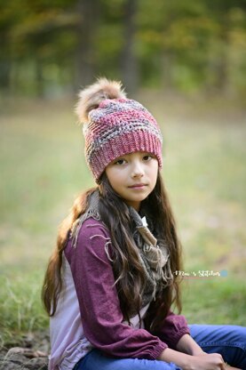 This is a PDF crochet pattern for a textured slouch hat in 6 sizes. This hat also includes a ponytail/messy bun option.