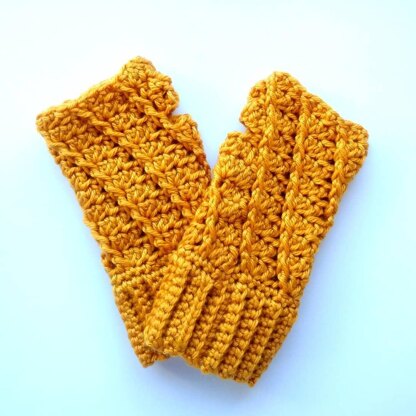 These pretty eyecatching spiral pattern mitts are soft and warm with a nice airy feel, perfect for autumn and spring and for those who like having their fingers free.