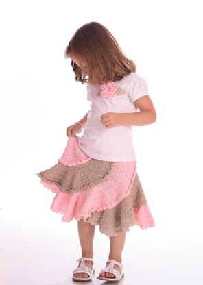 A fun spiral skirt. Made by crocheting individual flounces one on top of another. Make as many or as few as you like. Use as many colors as you like. Includes instructions for 2 different trims, has an elastic waist.