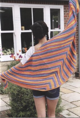 This kite shawl uses a self striping yarn working bands of stocking stitch, separated by bands of reverse stocking stitch.