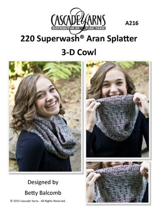 Splatter 3-D Cowl in Cascade Yarns 220 Superwash® Aran - A216 - Downloadable PDF is a free Beginner Knitting pattern by Betty Balcomb, available as a Downloadable PDF and includes instructions in English. Super fun to make, this pattern could be your next masterpiece!