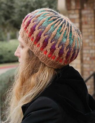 The pattern can be worked in three sizes and will fit comfortably on most adults. You'll need about 200 yds (183 m) of the main color and 100 yds (91 m) of the contrast color. Any worsted weight yarn should work just fine. I made my three hats with Cascade 220, Noro Kureyon, Patons Classic Wool and Mountain Meadow Wool.