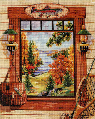 Designed by: Nancy Rossi. A moment born of change when the foliage at the water's edge is aflame with burnished hues. Join the fishermen at the cabin on the lake's banks. Dream of lazy, hazy autumn days and of the one that got away. This angler's delight is designed by Nancy Rossi\n