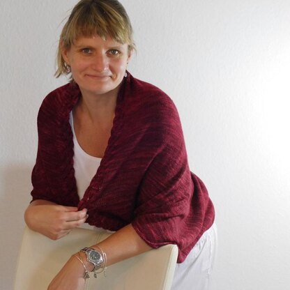 The Spree Shrug is reversible and seamless. It is knit from side to side with a provisional cast on, I-cord edging and a grafted finish. The cabled edging gives it a clean and finished look while adding just enough weight to lie gently on your shoulders. Inspired by the Spree River which winds through the middle of Berlin, the cables curve around and frame the shrug.