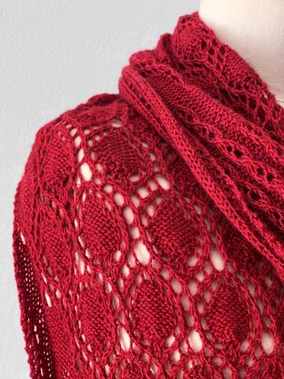 Sprezzatura uses a dynamic combination of two relatively simple lace patterns to create a striking effect. The way dominance shifts between the two stitches does demand that you pay attention while knitting, but the pay-off is effortless elegance. Just toss it around your neck knowing however it falls, there will be plenty of visual interest and no fuss.
