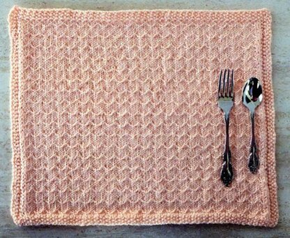 Perfect style and design for spring and summer for your dinner table! Knit this easy, fun pattern, which looks like a mock cable stitch pattern, but isnt. IT is easy to follow instructions. Knits up so pretty in pastel colors! Finished size is about 16 ¼ by 14. We used sport weight yarns, and knitting needles, US # 7. You can also use baby yarns, for another version, as directed.