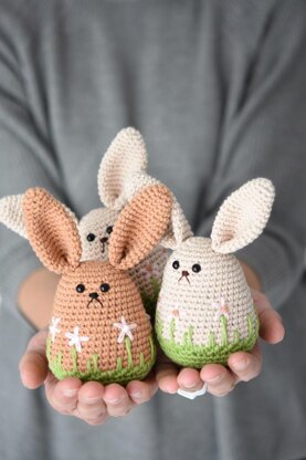 Spring bunny is inspired by spring, blooming flowers, bunnies and Easter eggs. All of these sweet things are put together in one design! The bunny has a simple shape and you only need to crochet 3 parts for it. What makes it special is the decorations – the grass on the bottom, and flowers embroidered on the body.