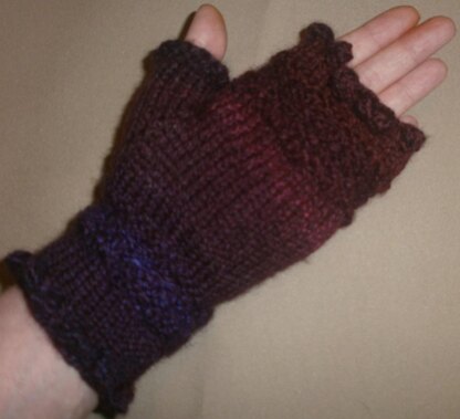 Easy knit for novice to expert in three sizes. Pretty fingerless mitt with the textures and colours of berries and glisten of dew drops. Cosy double knitting yarn and simple stitch patterns with the added luxury of a sprinkle of beaded embellishment make this a 'must have' for any knitter's accessory wardrobe!
