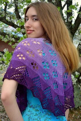 Crescent shaped shawl worked from center back uses modified Faroese shaping to help it stay on the shoulders. Skills required: basic understanding of lace, double increases and decreases. Written and charted instructions included. Suitable for the Intermediate knitter.