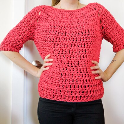 This Tee is designed to be airy and easy to throw over a tank on those cool spring days!