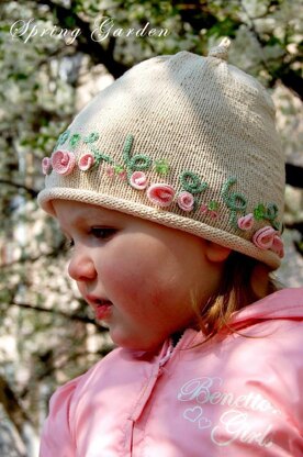 Where are the fairies?  On the petals of flowers? On the green leaves? On the wings of butterflies?  Or, maybe, they fly among the flowers and twigs on the hat of your baby?  Every young princess would be glad to have this hat!  And, knitting of this hat is quite easy! Try it and see for yourself!