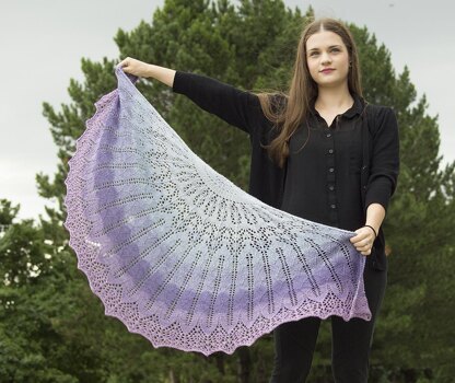 This shawl was designed to make the most of one of Knitcircus' 150g/660 yard gradient cakes. If you are substituting yarns, please plan for adequate yardage.