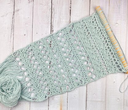 I love spring and BoHo styles! I wanted something that represented BoHo in the granny clusters as well as the lacy spaces that allows that warm spring breezy feeling to emerge. Adding the super long fringe just was the icing on the cake!